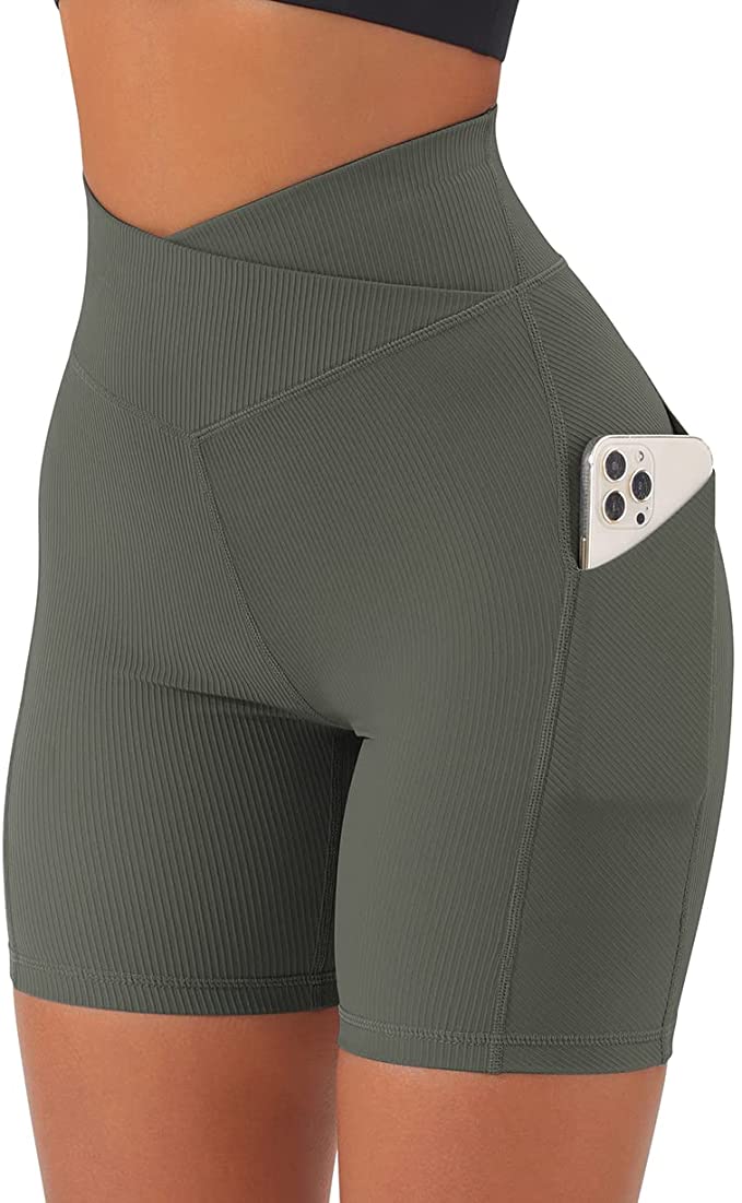newlashua Women Cycling Shorts with Pocket 5" Booty High Waisted Workout Shorts